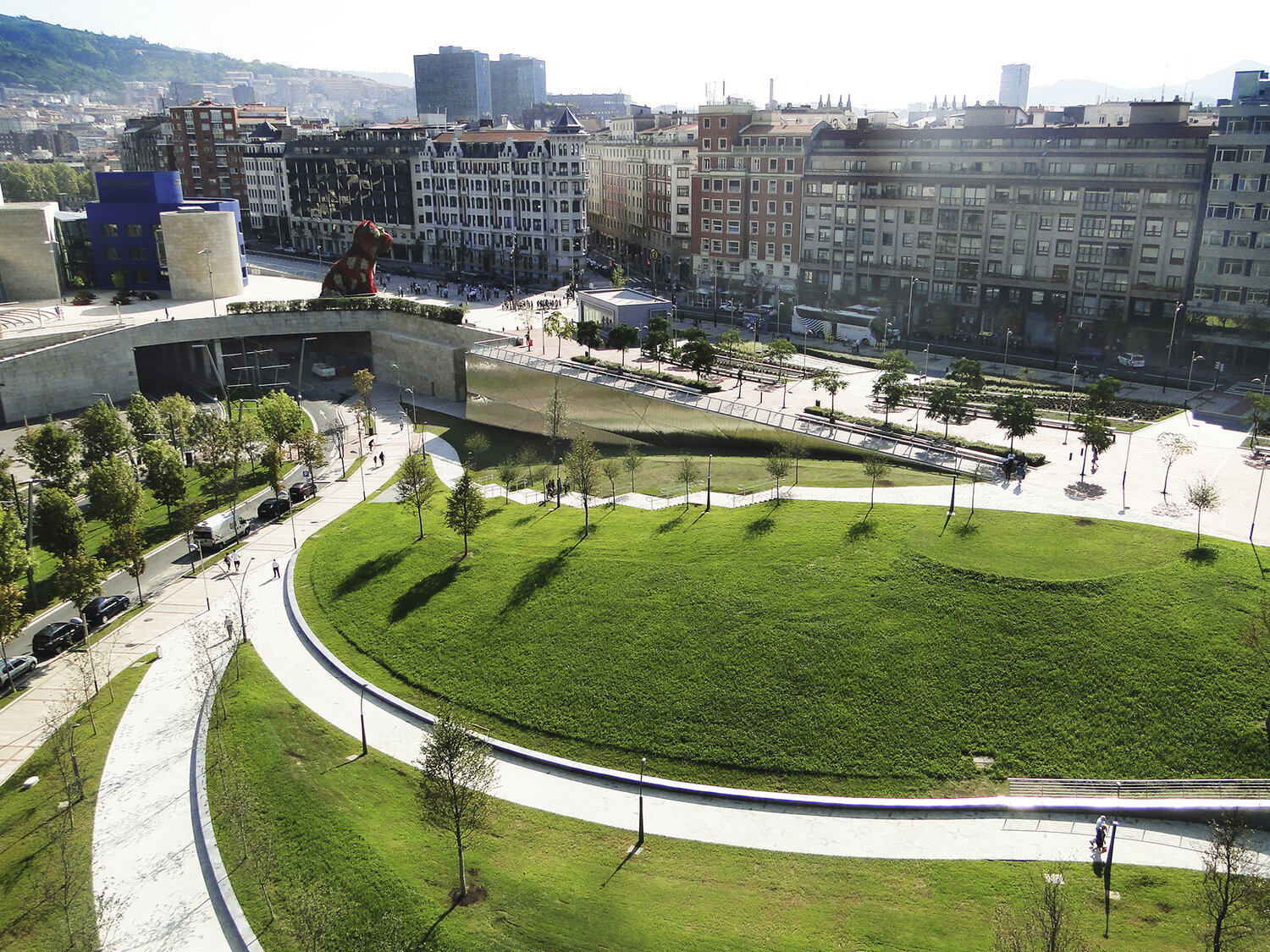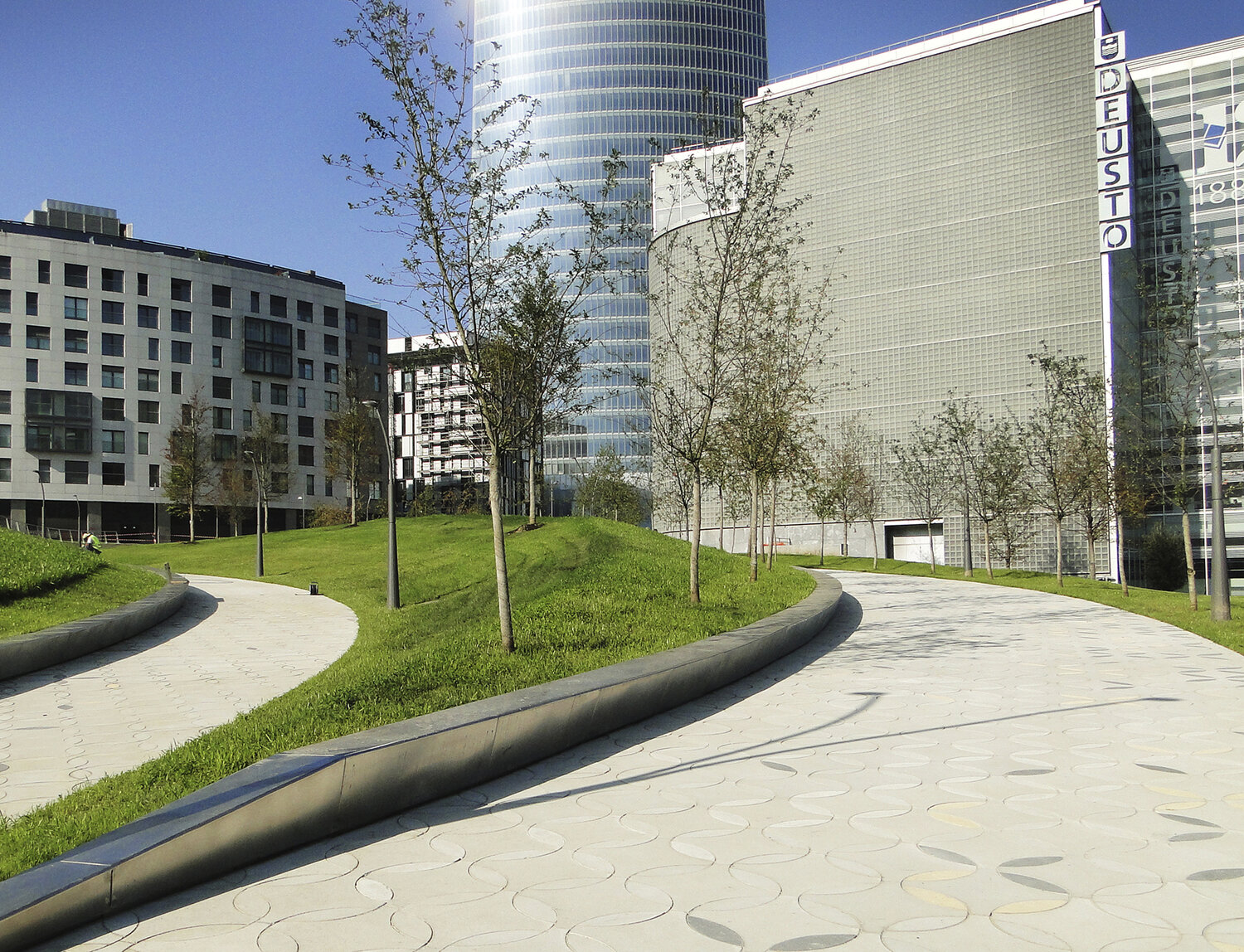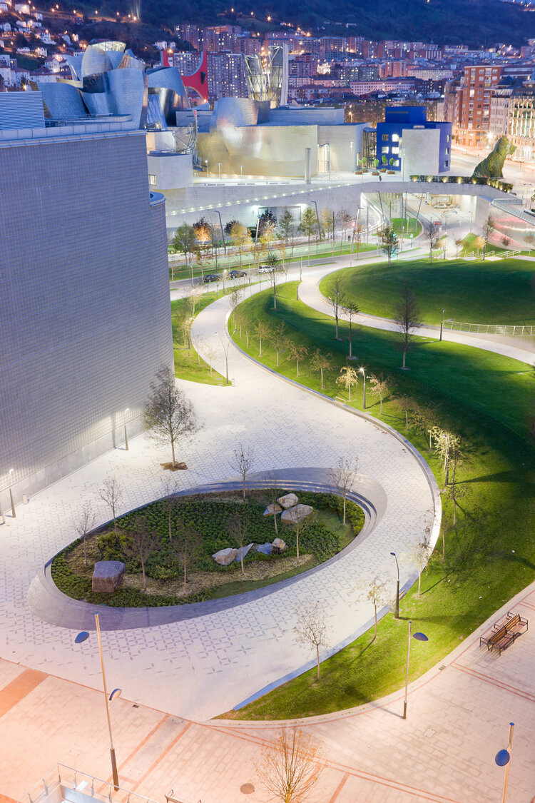 This park is the last sector to develop within the Masterplan of Abandoibarra, whose function is to connect all of the public spaces that surround it and to envelop the university and residential buildings housed. Through a series of terraces it hereby opens a system of connections that carry the pedestrians at the estuary of the Bilbao Ria.