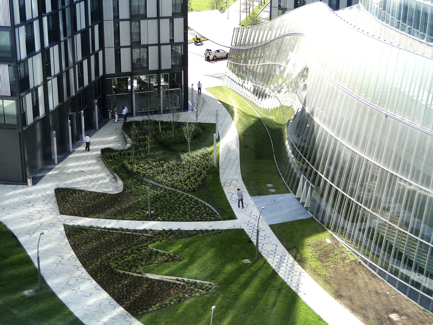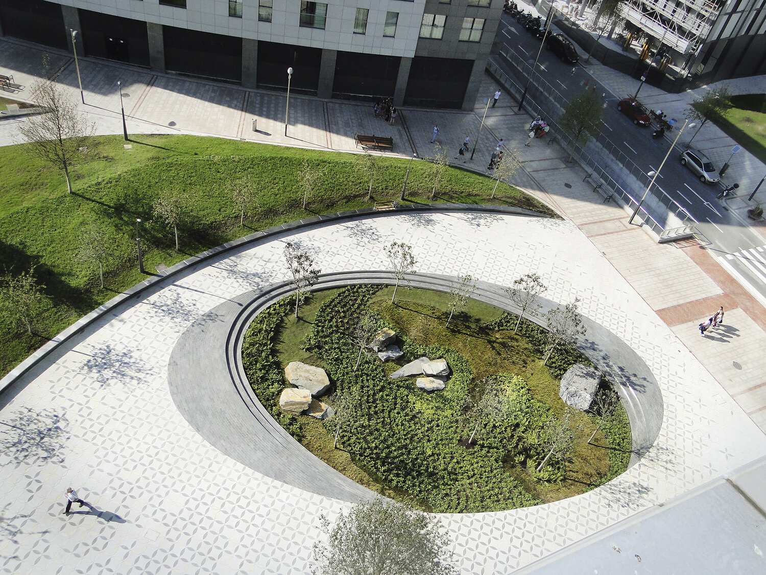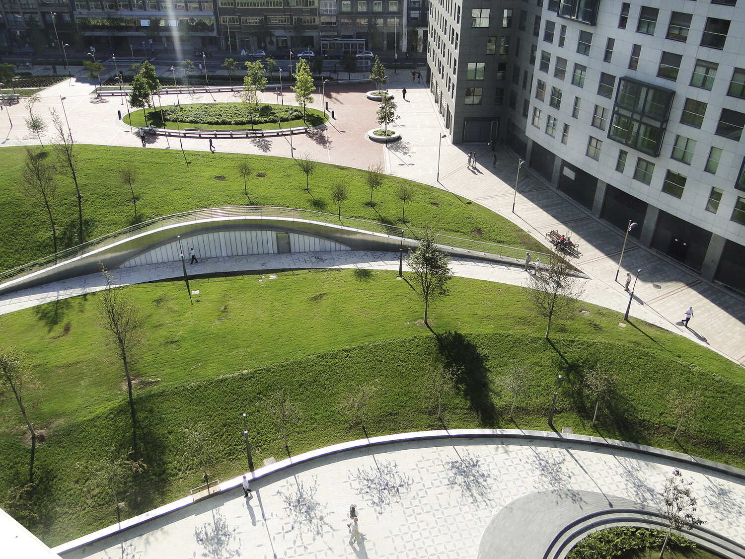 This park is the last sector to develop within the Masterplan of Abandoibarra, whose function is to connect all of the public spaces that surround it and to envelop the university and residential buildings housed. Through a series of terraces it hereby opens a system of connections that carry the pedestrians at the estuary of the Bilbao Ria.